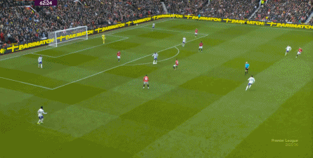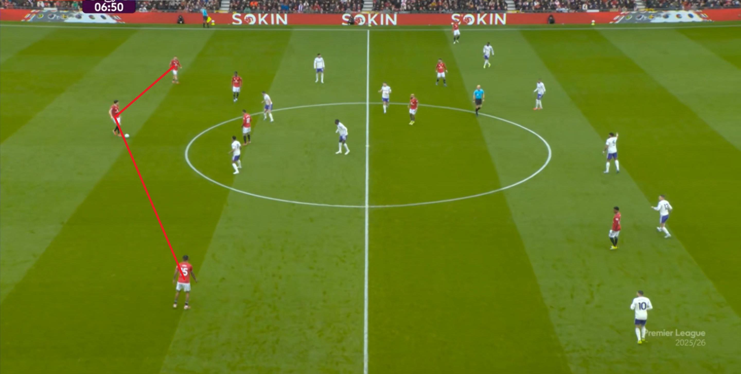 就在这次制造的前场界外球里,曼联转移到左路,从而制造了本场比赛的第一次进攻威胁,也就是上半场前半段只能打出来的传中: